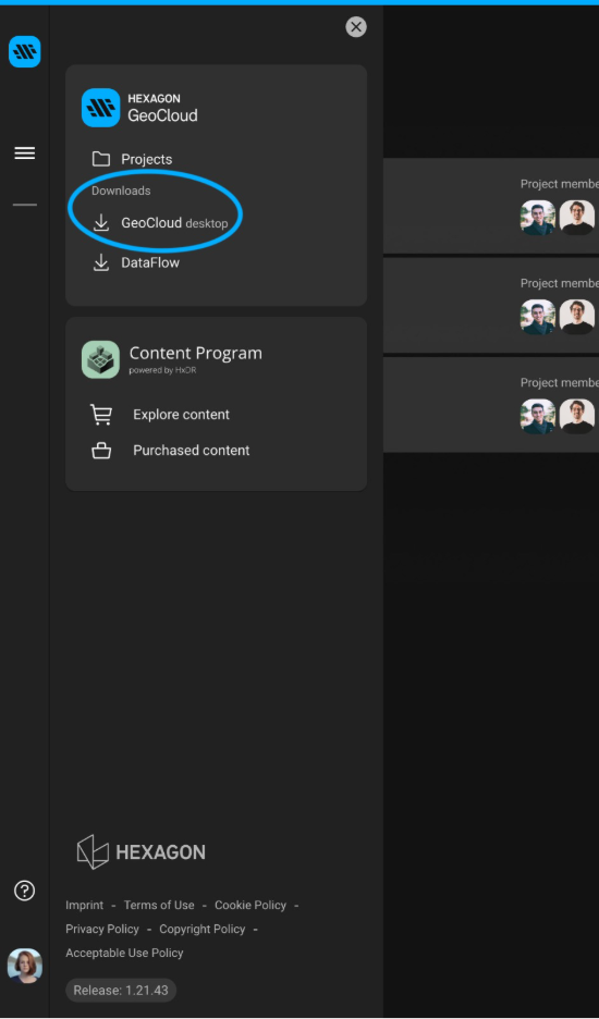 New customers: The new Hexagon GeoCloud desktop app is available to download from the web UI upon the new service’s release.