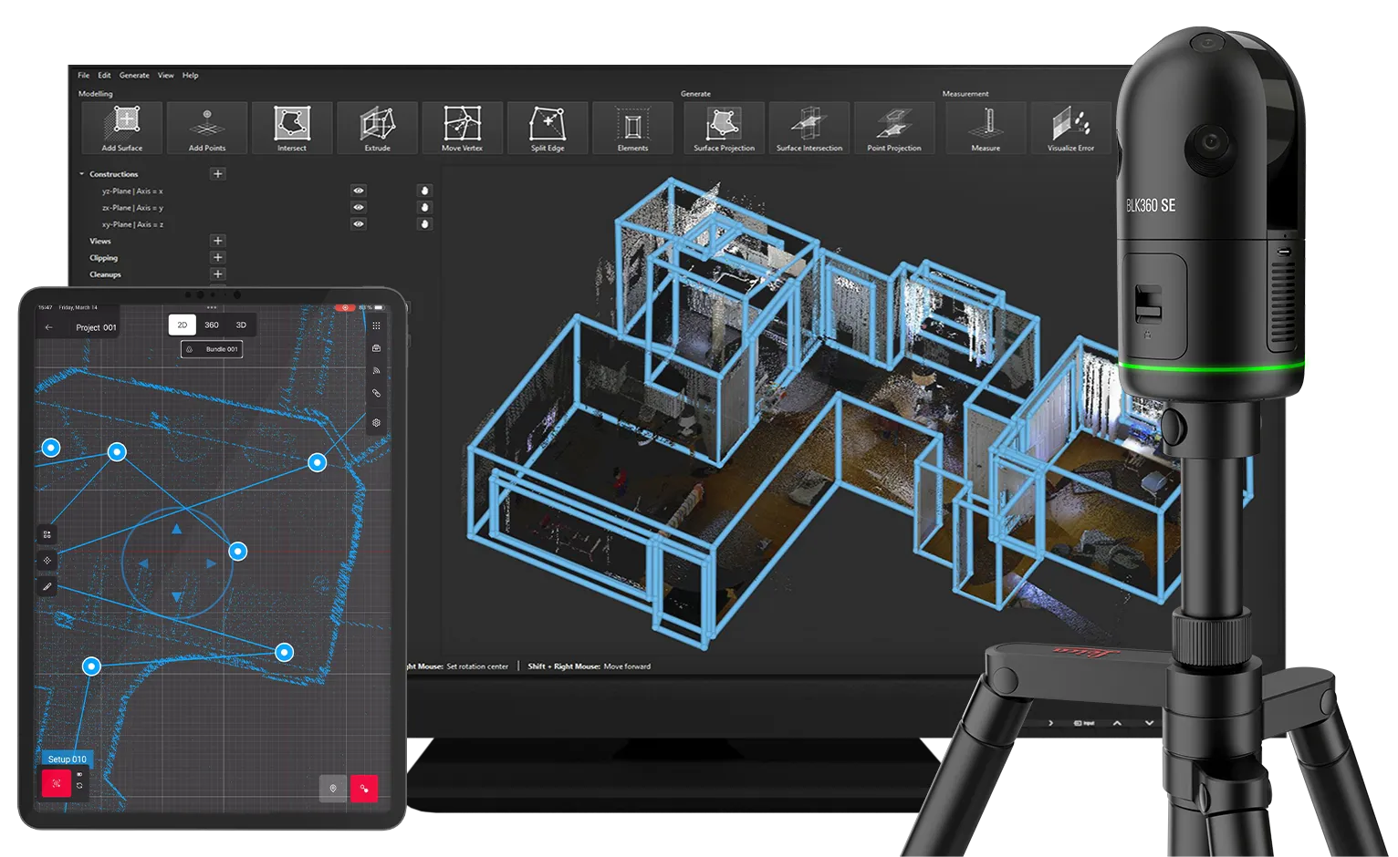 Discover how the BLK360 SE laser scanner, Leica Cyclone FIELD 360 app, and PinPoint software work together to help you: